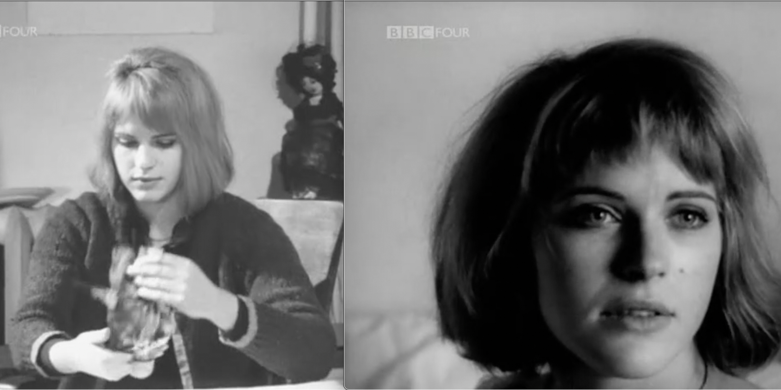 In 1962, she, Peter Blake, Peter Phillips, and Derek Boshier were featured in Ken Russell’s BBC documentary Pop Goes The Easel. She was also starring in new wave films. Through her lover the director and actor Phillip Saville, Boty met musicians and television performers as well. When a young Bob Dylan came to visit London for the first time at Christmas 1962, Boty was one of his guides around town, taking him to a party at her friend Jane Percival’s at which he “sat in the corner and played ‘Blowin’ In The Wind’”—John Hughes has persuasively and engagingly told this story.